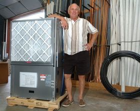 Kevin Carney with a geothermal heat pump days before it was installed in Bucks County.